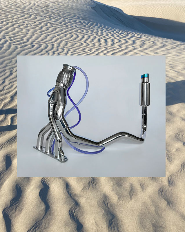 The selection of works presented focuses particularly on off-road racing and its ecological, economic, symbolic, and cultural implications for the peninsula. Within the broader world of off-road racing we find the famous Baja 1000. This race is a 1,000-mile (1,609-kilometer) course that involves crossing the desert from end to end, burning around 900 gallons of gasoline. The star vehicles are the so-called Trophy Trucks, large machines with military technology and powerful engines that allow the racers to navigate difficult terrain. Throughout the desert, racers face the famous silt beds, beds of ultra-fine sand. Driving on them is like driving on water; the challenge is to cross them as quickly as possible without sinking. Doing so not only can one lose control, but the sand rises, creating a kind of cloud that envelops the vehicle. The sand, being so fine, with minimal density and weight, rises upon contact with the intersection, forming this enormous cloud that hangs inside and outside the vehicle, completely obstructing visibility for several minutes. The image of these heavy machines, with 950 horsepower and a-meter tall tires, is weakened by the lightness of the sand. This project turns our attention toward the natural agency of the minuscule and contrasts it with the physical and technological weight of the car and what it symbolizes. Through invisible natural dynamics, the project seeks to destabilize the notion of progress and domination of nature.
